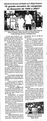 - Jornal Tribuna da Zona Norte destaca o evento "O Grande Encontro de Campeões do Basquete" desde a seleção de 1948 - Olimpíadas de Londres. Nov / 2.001.